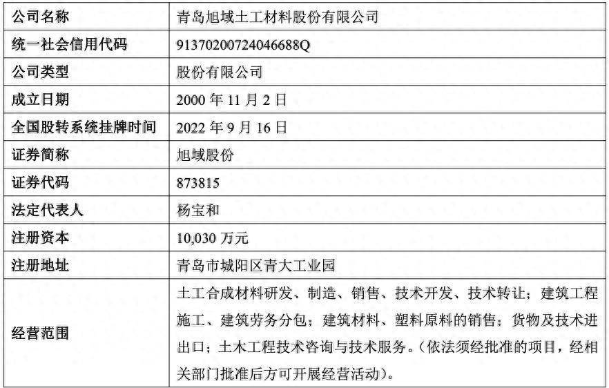 本次交易的标的公司为全国中小企业股份转让系统挂牌公司青岛旭域土工材料股份有限公司(证券简称:旭域股份,证券代码:873815),该公司成立于2000年11月2日。